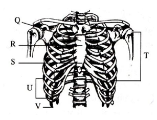 Tulang rusuk dikelompokkan menjadi tiga kelompok. Salah satu rusuk dari kelompok rusuk palsu ditunjukan oleh…