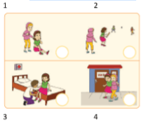 Perhatikan gambar di bawah ini!Urutan gambar yang benar agar menjadi sebuah cerita adalah....