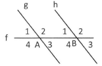 Jika g // h, garis g dan h dipotong oleh garis f di titik A dan B, maka sudut luar berseberangan dengan A1 adalah ....