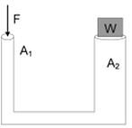 Luas penampang 1 adalah 5 cm2 dan luas penampang 2 adalah 25 cm2. Jika berat beban adalah w = 1500 N, besar gaya F yang diperlukan untuk menaikkan beban w adalah….