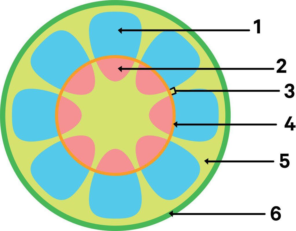 Bagian epidermis dan korteks ditunjukkan oleh nomor ….