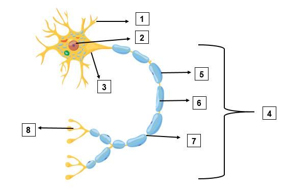 Bagian sel saraf yang berfungsi untuk menerima impuls dan mempercepat jalannya impuls secara berurutan ditunjukkan oleh nomor ….