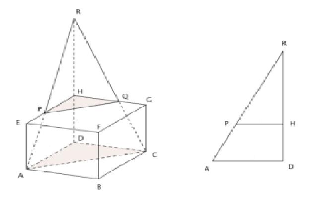 Pada Kubus ABCD.EFGH, P pada EH dengan EP:PH = 1:2 dan titik Q pada GH dengan GQ:QH = 1:2. Perpanjangan AP dan CQ berpotongan di perpanjangan DH di titik R. Jika panjang rusuk kubus adalah 6, maka volume ACD.PQH adalah….