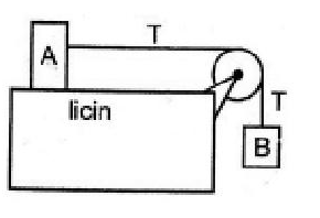 massa balok A dan B masing-masing 6 kg dan 2 kg. percepatan gravitasi percepatan benda dan tegangan tali T adalah...