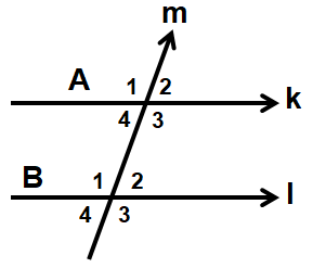 Pada gambar disamping, garis k sejajar dengan garis l dipotong oleh garis m dititik A dan B. Pasangan sudut luar berseberangan adalah ....
