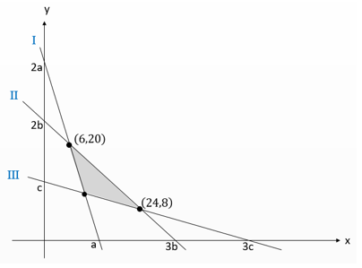 Maka persamaan garis III adalah x + 3y = 316 ⇒ x + 3y = 48