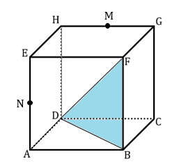 Titik M dan N masing-masing adalah titik tengah ruas garis GH dan AE. Jika diberikan tiga bidang MFG, NAD dan BDF maka titik yang terletak di tiga bidang tersebut adalah ….
