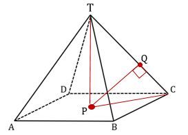 3. Jarak garis BD ke garis TC dapat diwakili oleh jarak titik P ke garis TC, atau sama dengan PQ. Perhatikan gambar di bawah ini!