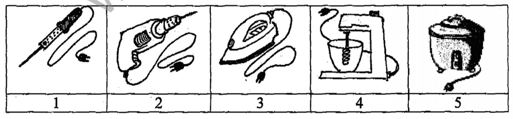 Nomor alat = 2 dan 4; Perubahan energi = energi listrik menjadi energi gerak