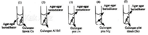 Perhatikan gambar paku Fe yang digulung dengan beberapa logam berikut: