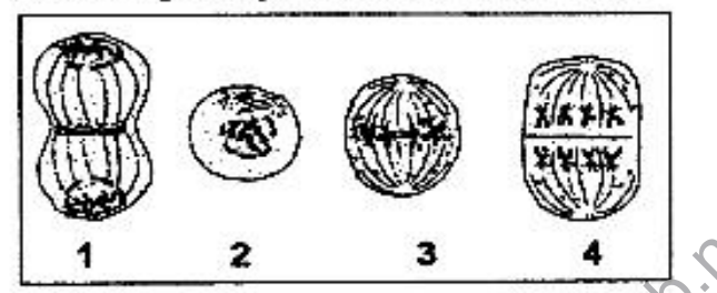 1. telofase, 2. profase, 3. anafase, 4. metafase