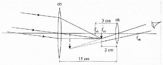 Perhatikan gambar pembentukan bayangan pada teropong bintang!
