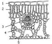 Bagian yang berfungsi dalam melakukan fotosintesis dan transport zat secara berturut-turut ditunjukkan oleh nomor ....