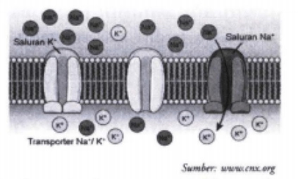 Perhatikan gambar penghantaran impuls secara konduksi yang melibatkan pompa berikut.