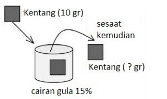 Berdasarkan gambar di atas bagaimana berat kentang setelah dikeluarkan dari larutan tersebut?