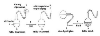 Perhatikan gambar percobaan yang dilakukan oleh Louis Pasteur berikut ini!