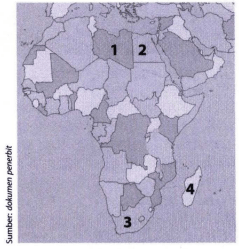 Negara berkembang di Afrika yang diberi nomor 1-4 pada peta secara berturut-turut adalah ....