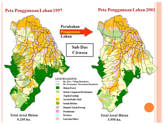 Perhatikan gambar peta perubahan penggunaan lahan berikut!