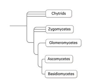 Perhatikan gambar pohon filogenetik kelompok fungi berikut!