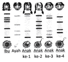 (4) Profil pita DNA pada anak laki-laki mengikuti DNA paternal