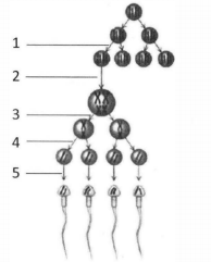Tahap pembentukan spermatosit sekunder ditunjukkan oleh nomor ....