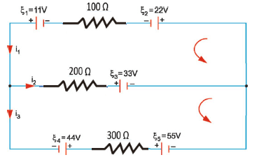 Jika arus dan loop pada suatu rangkaian tertutup digambarkan seperti di atas, pernyataan yang benar berdasarkan gambar tersebut adalah ....