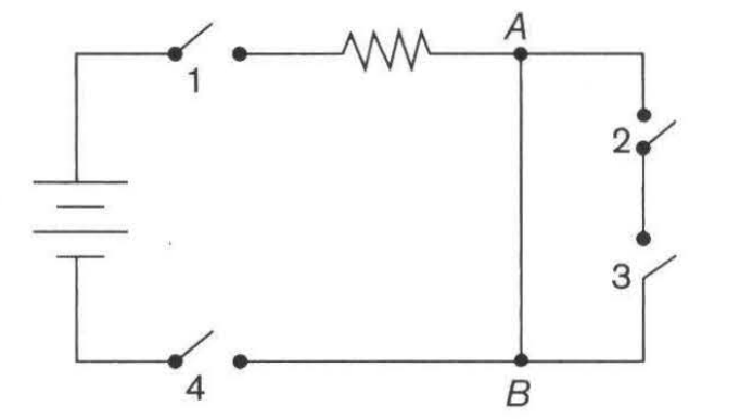 Sakelar yang harus ditutup untuk mengalirkan arus melalui konduktor AB adalah ....