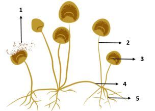 Bagian stolon, sporangiofor dan sporangium secara berurutan ditunjukkan oleh nomor ….