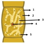 Bagian pirenoid, kromatofor dan dinding sel secara berurutan ditunjukkan oleh nomor ….