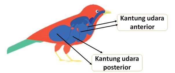 Perhatikan gambar sistem pernapasan burung berikut: