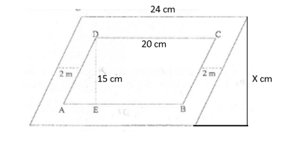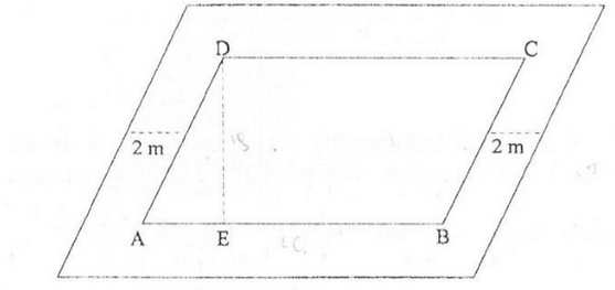 Sebidang kebun berbentuk jajaran genjang. Di bagian dalam kebun dibuat taman dengan panjang AB = 20 m dan panjang DE = 15 m. Di sekeliling kebun akan dibuat jalan. Jika kebun dan taman