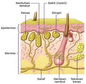 Bagian reseptor peraba yang mampu merasakan dingin dan panas ditunjukkan pada nomor ...