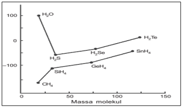Dari grafik tersebut, H2O mempunyai titik didih paling tinggi. Hal ini disebabkan oleh....
