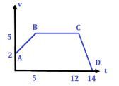 Pada titik A-B kecepatan benda meningkat dari nol hingga 5 m/s.