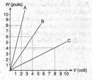 Melalui grafik usaha dan beda potensial tersebut, berikan kesimpulan hubungan antara muatan A, B, dan C!