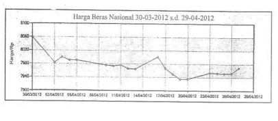 Harga beras nasional 30 Maret 2012 s.d. 29 April 2012 tidak stabil.