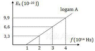 Fungsi kerja logam A adalah .... (h = 6,6 x 10-34)