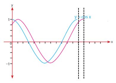Sebuah grafik fungsi cosinus (berwarna biru) di geser seperti gambar di atas maka akan persamaan fungsi menjadi ….