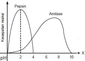 kecepatan reaksi enzim pepsin lebih besar daripada enzim amilase
