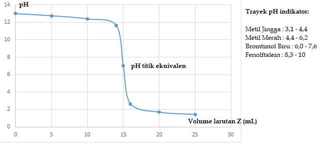 Perhatikan grafik perubahan pH titrasi!