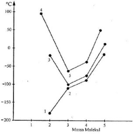Berdasarkan grafik tersebut, senyawa yang mengandung ikatan hidrogen antar molekulnya adalah nomor ....