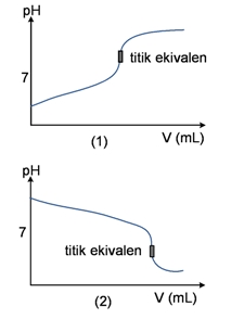 (1) titrasi basa kuat dengan asam kuat, (2) asam kuat dengan basa kuat
