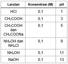 Perhatikan harga pH beberapa larutan berikut: