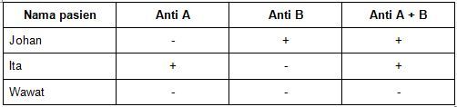 Perhatikan hasil uji golongan darah di bawah ini!