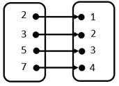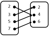 Jika diperhatikan, setiap anggota himpunan A memiliki pasangan dengan tepat satu anggota himpunan B. Namun, terdapat anggota himpunan B yang memiliki pasangan dengan 2 anggota himpunan A, yaitu 2. Oleh karena itu, himpunan pasangan berurutan ini tidak menunjukkan korespondensi satu-satu.