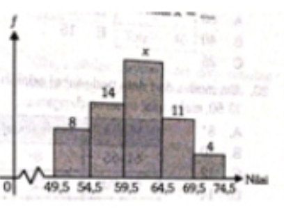 Jika modus pada histogram di atas adalah maka nilai adalah...