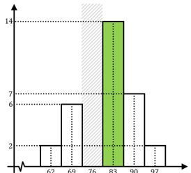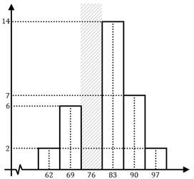 Perhatikan histogram nilai ujian matematika di sebuah kelas berikut ini!