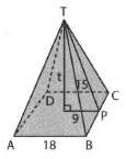 Perhatikan Iimas TABCD alasnya berbentuk persegi. Keliling alas Iimas 72 cm, dan panjang TP = 15 cm. Dengan gunakan teorema phytagoras, volume bangun di bawah ini adalah .... cm3