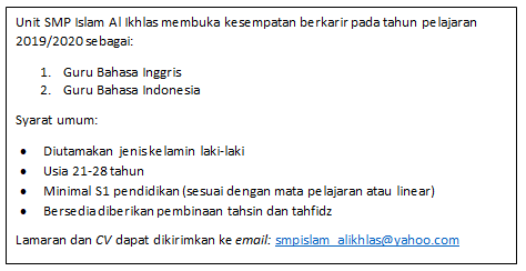 Perhatikan iklan lamaran pekerjaan berikut ini!