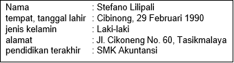 Berdasarkan iklan surat lamaran pekerjaan di atas, data diri pelamar yang sesuai dengan kategori tersebut adalah ….